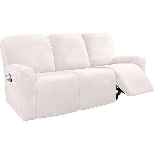 ストレッチベルベットリクライニングソファーカバー3人掛け8-分割タイプ付サイドポケッ電動リクライニングチェアソファーカバー滑り止めソファーカバーに適用する子ペット-白-3人掛け