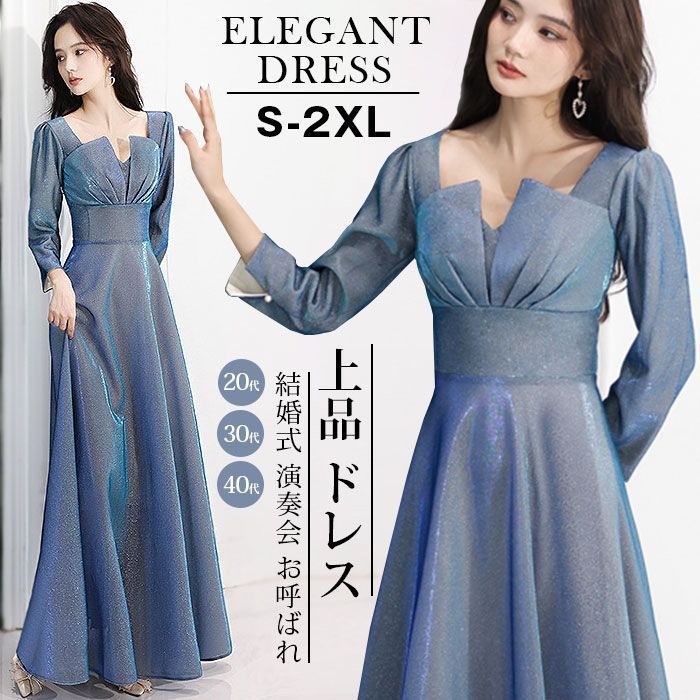 ドレス結婚式大人ワンピース長袖ロングドレスパーティードレスウエディングドレス上品袖あり演奏会フォーマルミ結婚式ドレス