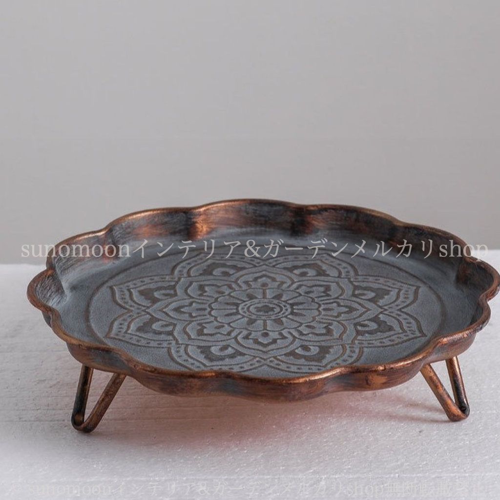 こちらのプランタースタンドは、ヴィンテージ調の美しい柄が特徴のアイテムです。独自のデザインと色合いが、お部屋や庭を一気におしゃれな空間に変えてくれます。植物を上手に引き立てるスタンドとして、またその存在自体がインテリアの一部となる特別な商品です。