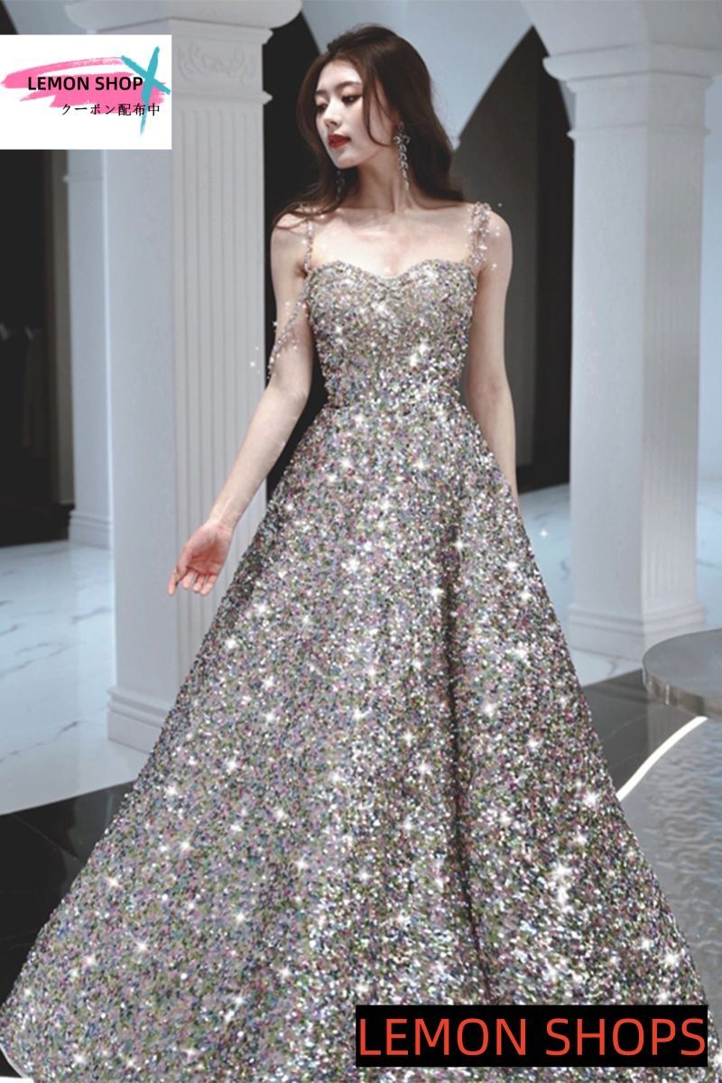 2025 ドレス ロングドレス ゴールド スパンコール ノースリーブ 演奏会 発表会 カクテルドレス イブニングドレス 大人 パーティードレス ラメ ステージ キラキラ ウエディングドレス LEMON