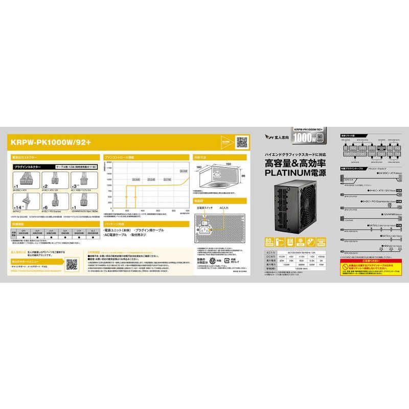 玄人志向 PC電源 1000 W ATX Platinum KRPW-PK 92