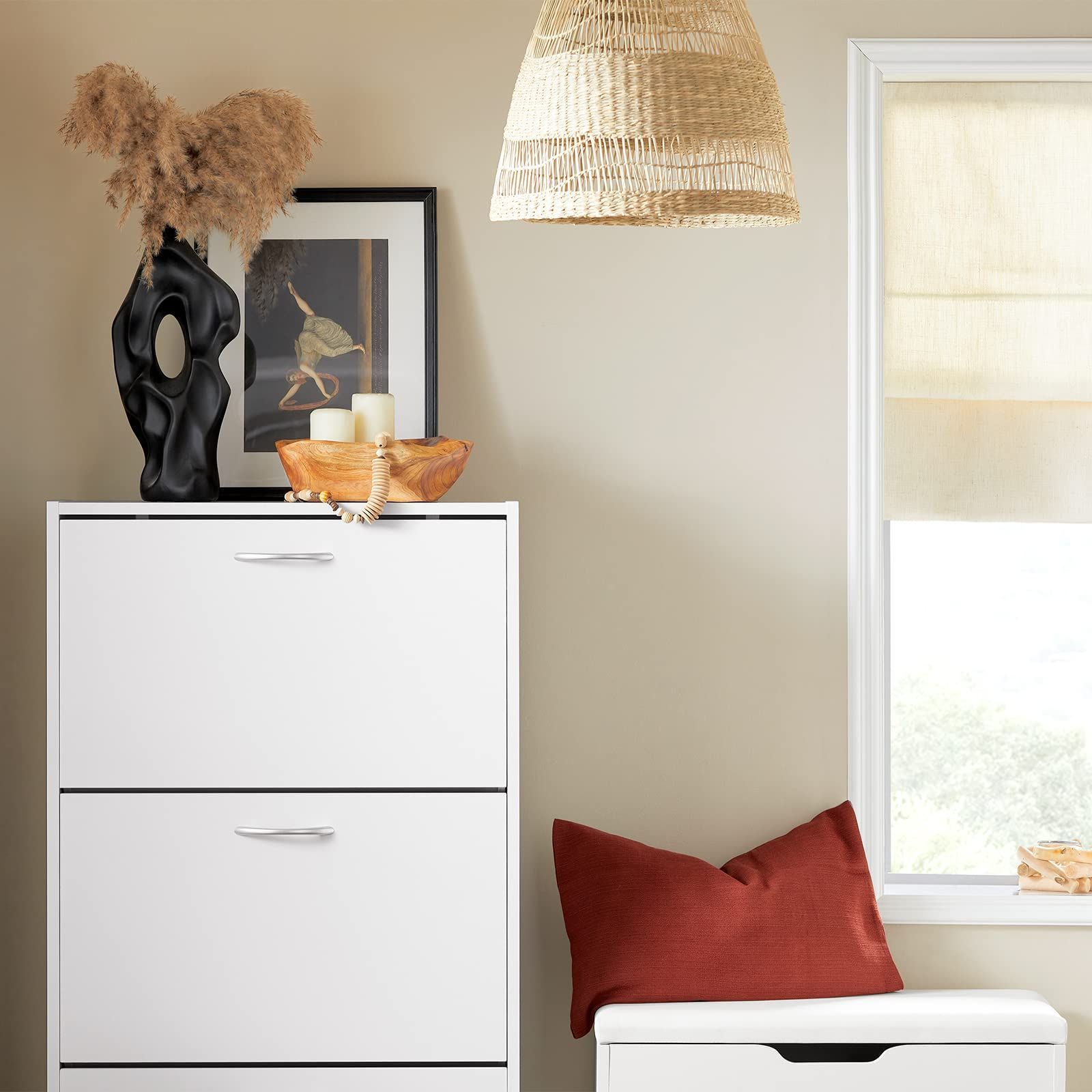 【薄型シューズボックス】奥行24cmだけ、狭い玄関の靴収納問題を解決します。天板にも、鍵やスマホとかの小物を置けます。