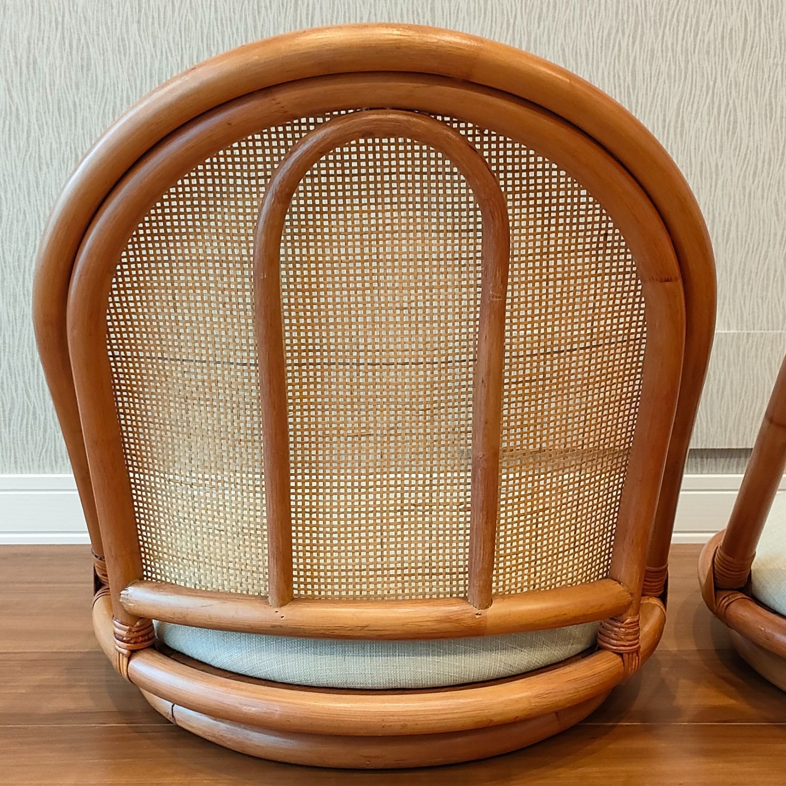 ラタン 回転座椅子 丸 クッション付き 2台セット