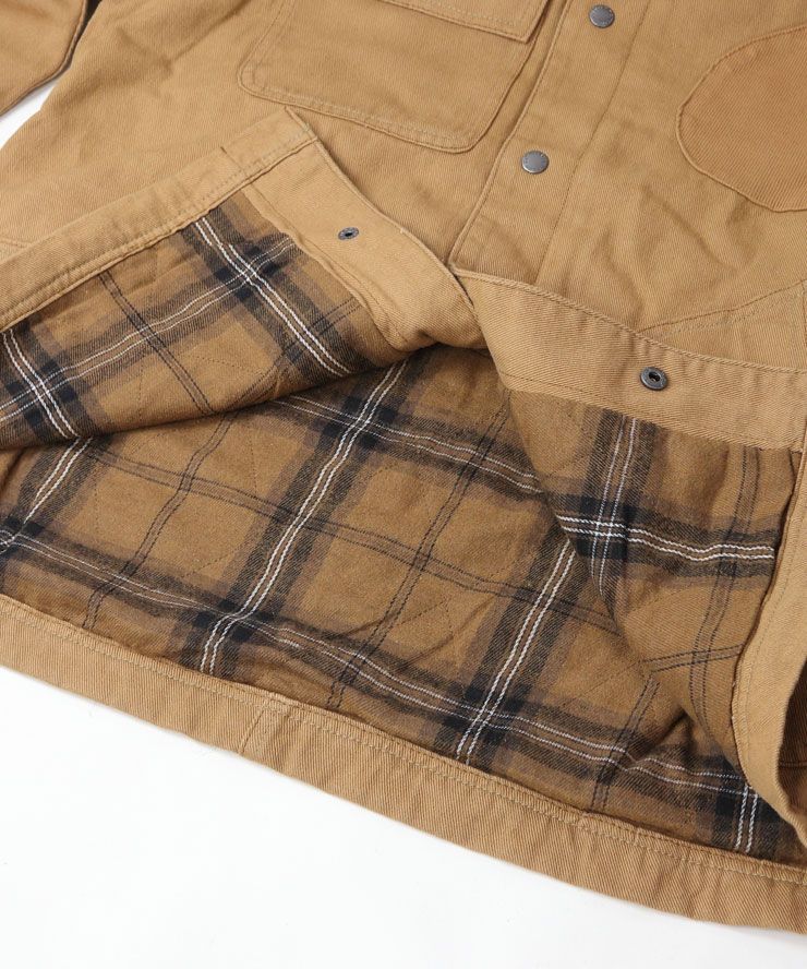 デザイン性と機能性を両立。裏地にはチェックのネル生地を採用し、見た目にもあたたかい仕上がりです。