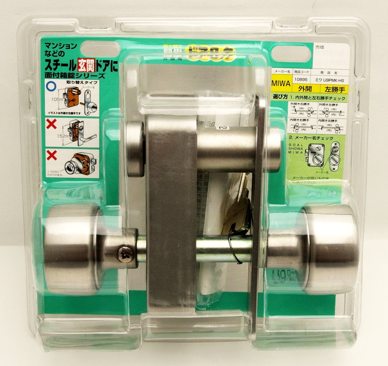美和ロック 取り替え簡単 ドアロック 面付箱錠シリーズ U9PMK-HS 外開 左勝手 10895