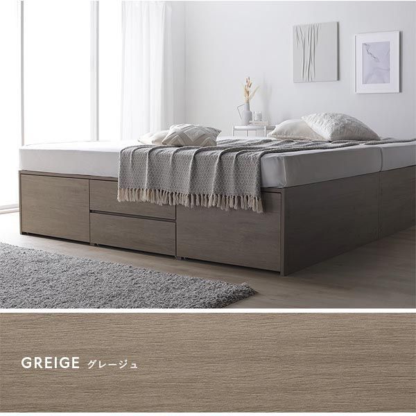 ヘッドレス チェスト ベッド 通常丈ワイドキング220 S SD グレージュ 薄型国産ポケットコイルマットレス付き 大容量 収納付 すのこ 収納ベッド 寝室家具 寝具 組立品