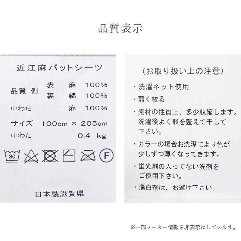 麻 敷きパッド シングル 近江麻 表地リネン100% 中わたラミー100% 洗える ウォッシャブル パットシーツ 寝具 9 S-SP 100 G