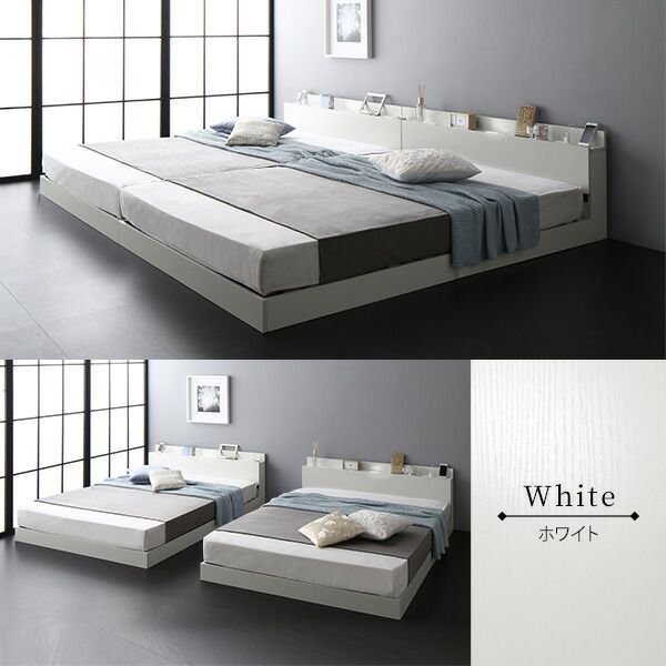 宮棚付き ローベッド ベッド キングサイズ SS S ベッドフレームのみ スノコ構造 ヘッドボード付き LEDライト付き 二口コンセント付き 木目調 頑丈 ブラック