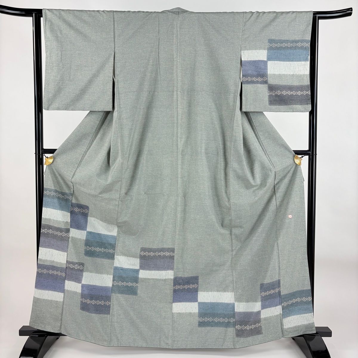 付下げ 身丈165 cm 裄丈64 M 袷 牛首紬地 落款 菱 幾何学模様 灰緑 正絹