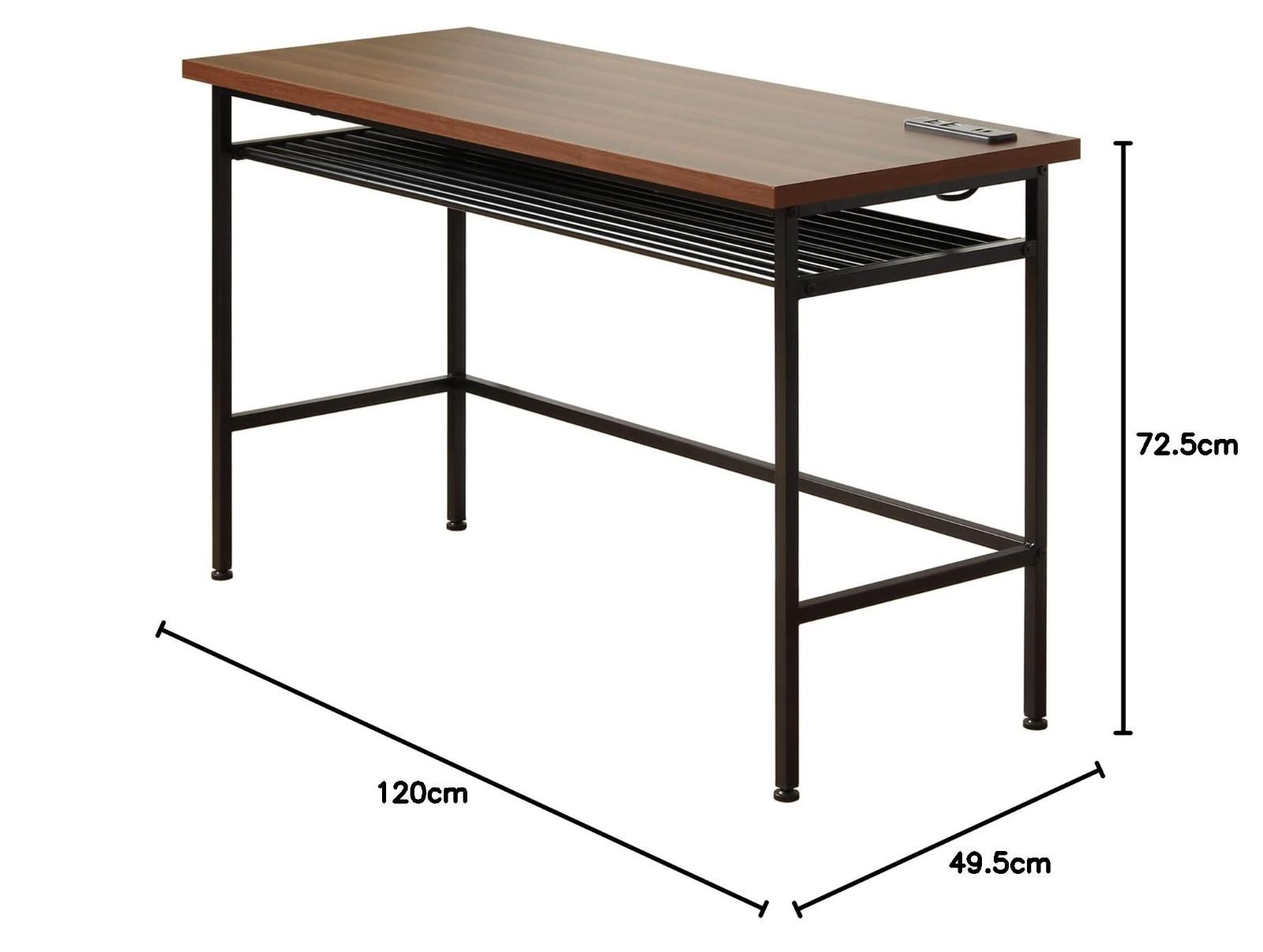 岩附 デスク パソコンデスク 棚付き USBポート 2口コンセント アジャスター ブラウン IW-1250 幅120×奥行49.5×高さ72.5cm