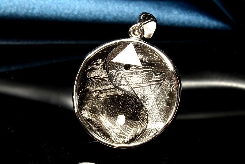 スウェーデン産シルバー925 ギベオン メテオライト隕石 18 mm シルバー ブラックコーティング 陰陽太 図 ペンダントトップ 売り パワーストーン 天然石 _PRG 2358-4