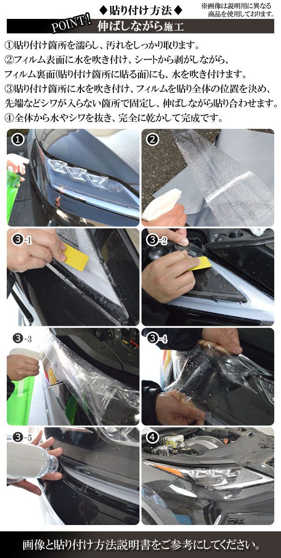 ※事前に動画配信サービス等で施工動画を確認し、説明書と画像に記載の貼り付け方法を参考に施工することをお勧めします。