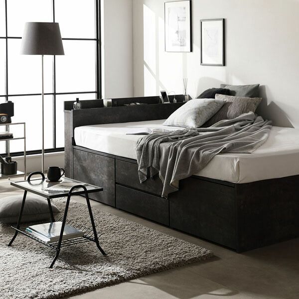 宮付き チェスト ベッド 通常丈シングル ブラウン 3ゾーンポケットコイルマットレス付き コンセント付 大容量 収納ベッド すのこ 寝具 組立品