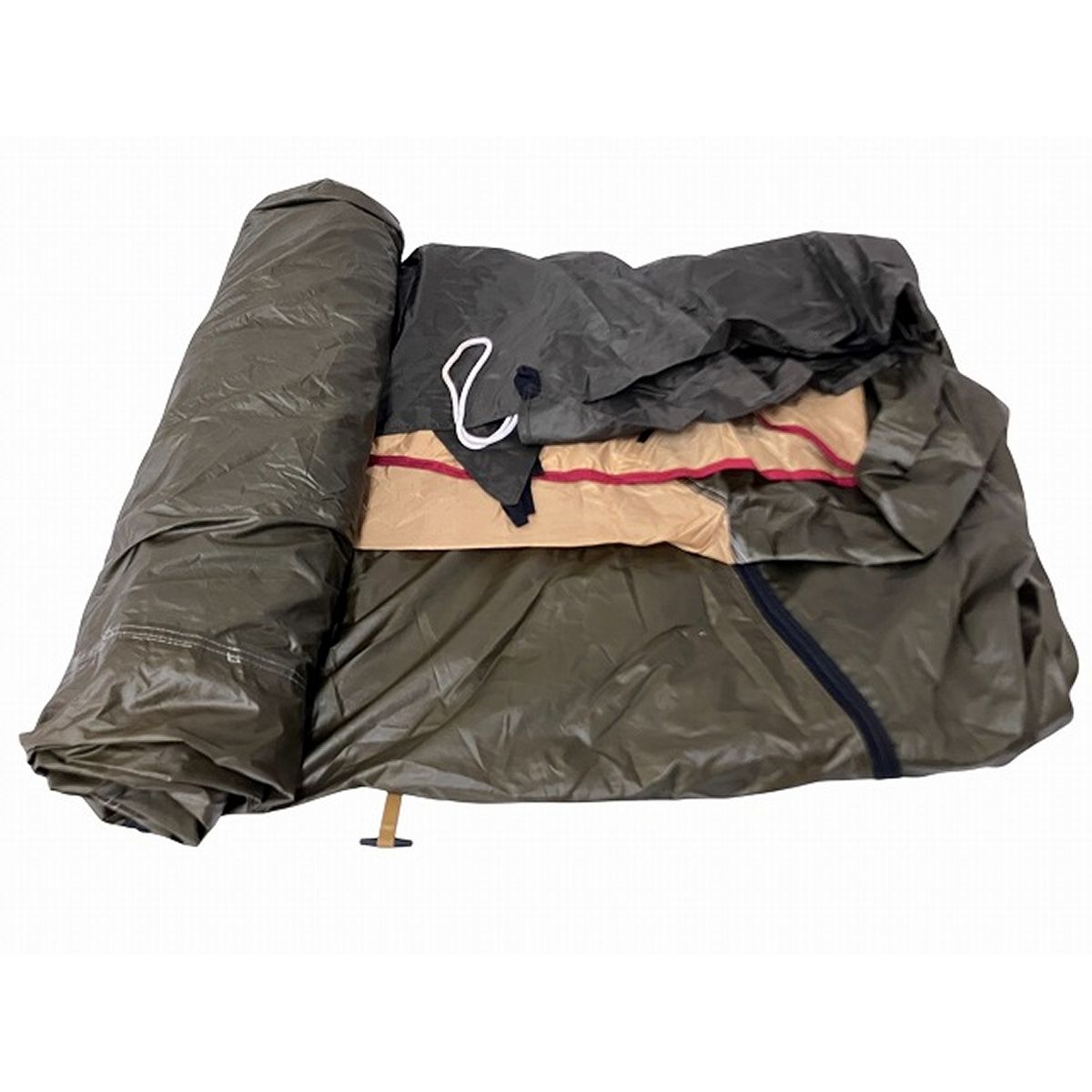 ・幕体(タープ本体): スレ、汚れ、土汚れ、草の付着、収納時のシワなどが見受けられます。