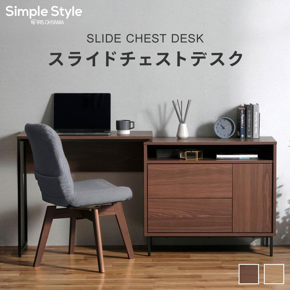 アイリスプラザ デスク 学習机 書斎 スライドチェストデスク スライドデスク 収納 ウッドデスク 木製 リモートワーク 勉強机 PCデスク 机 スタイリッシュ リビング 寝室 北欧 在宅 おしゃれ 棚 キャビネット ウォールナット SLCD-790