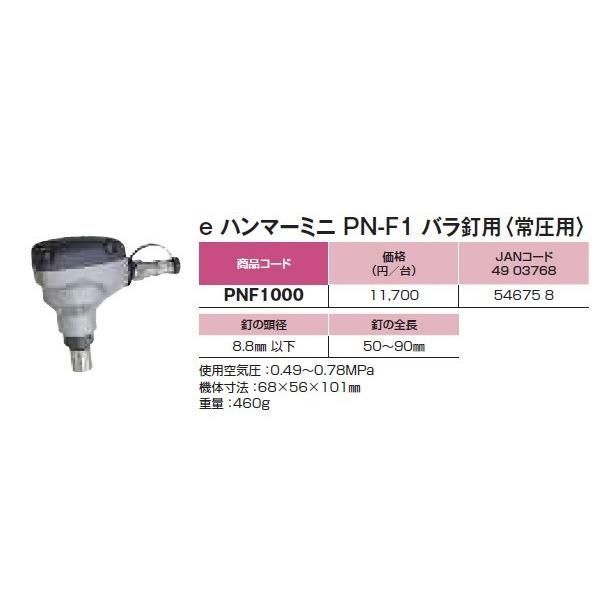若井産業 常圧用 Eハンマー ミニ PN-F 1 PNF 1000 使用空気圧 0.49~0.78 MPa 釘の頭径 8.8 mm以下 釘 の全長 50~90 mm WAKAI