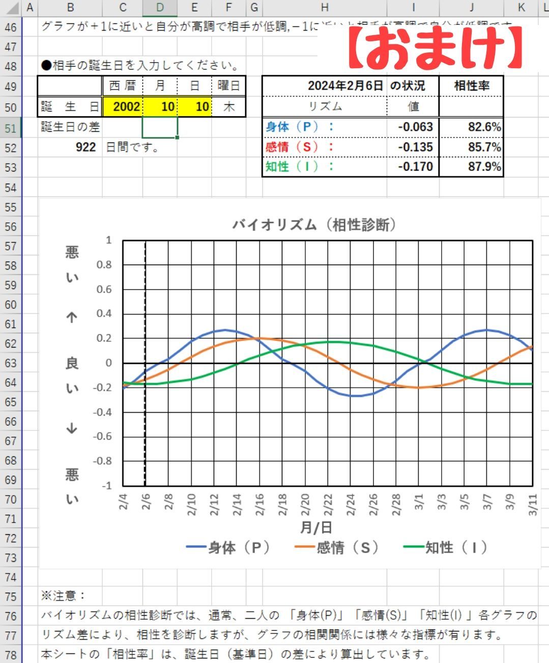 ★【おまけ】バイオリズム計算シート Excel