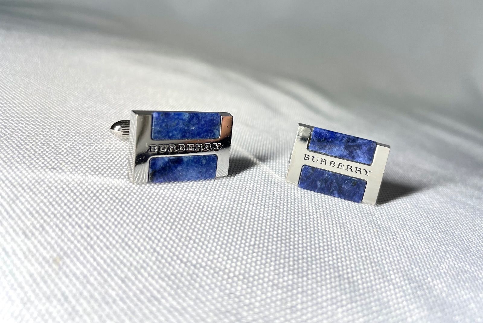 Burberry バーバリー ブランドロゴ文字 ソーダライト装飾 鏡面スターリングシルバー SV 925 カフス カフリンクス ボタン