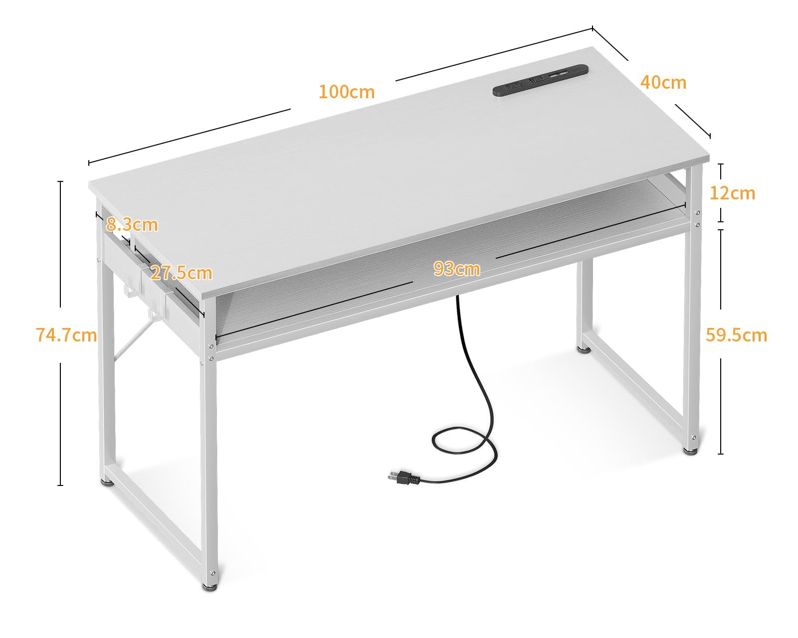 テレワーク用 省スペース コンパクト フック 付き ワークデスク 子 desk 組立簡単 computer 勉強机 コンセント付き 収納付き ゲーミングデスク 白い 幅100 cm パソコンデスク pcデスク 机 ODK