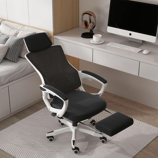 LIYURUIオフィスチェア人間工学デスクチェア通気性メッシュ在宅勤務椅子事務椅子360度回転座面昇降PCチェアフットレスト付き