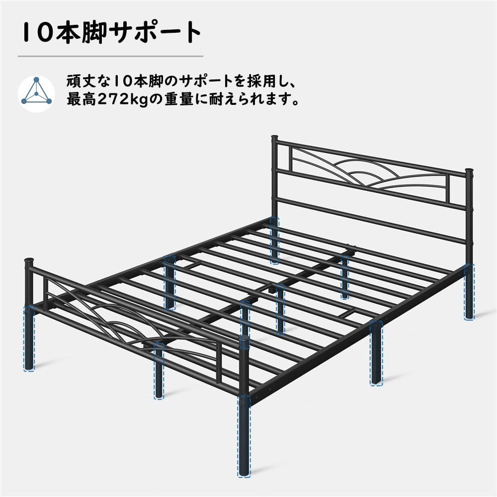Yaheetech ベッドフレーム ダブル 140 x 200 cm スチールベッド ダブルベッド パイプベッド アイアンベッド ベッド下収納 ロボット掃除機OK 10本脚サポート ヘッドボード付き フットボード付き 通気性よい カビない きしみにくい 静音設