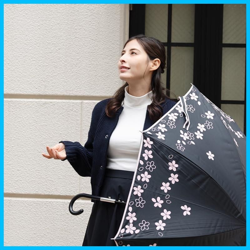 オカモト原宿店 日傘 レディース 晴雨兼用傘 桜柄 紫外線遮蔽率99% 生地裏コーティング ブラック チャーム付き 60cm UVカット 遮光 長傘 ジャンプ傘 軽量 熱中症対策 日焼け対策