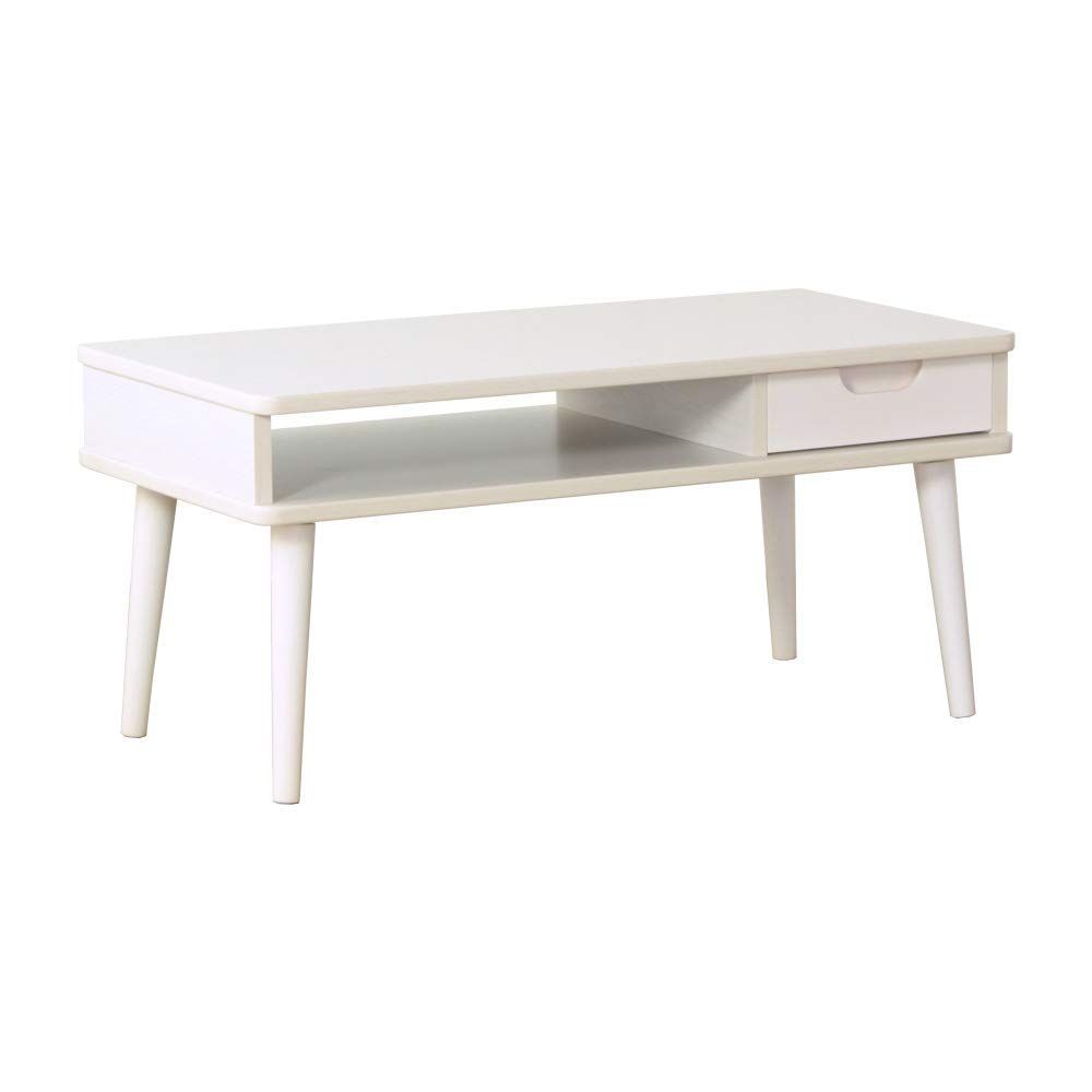 岩附 リビングテーブル 引き出し 収納 木製 天然木脚 コンパクト 幅80×奥行40×高さ37cm 白 ホワイト IW-37WH