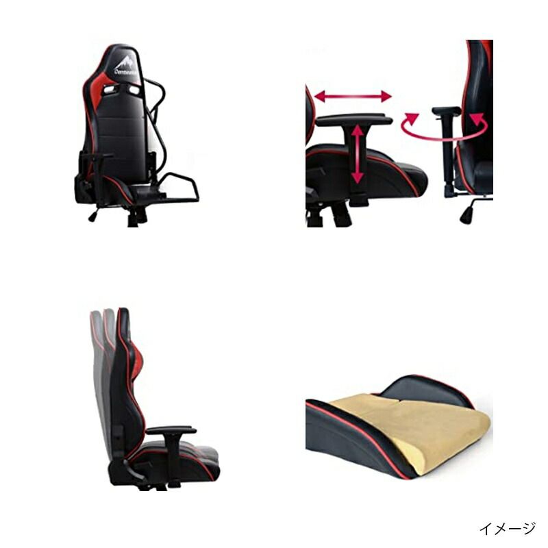 【商品説明】長時間使用に適した機能性 ?インテリアメーカー作る細部にまでこだわったチェア!?・ホールド感が高い バックシートは、内部構造を細かく設計した、こだわりの三次元構造。長時間座っていても、姿勢をサポートする設計で、ゲーマーやクリエーターの方に満足いく座り心地を実現!・耐久性が違います従来の商品は、組み立てて使用してみると、意外にガタつく…なんてことがありましたが、この商品はしっかりしたメタルフレームを使用していますので、ガタつかない強度を目指しました。・お好みのポジション可能Switchやパットを持つときなどアームが微妙な位置にある…ということがないようにアームは昇降・前後・回転調節可能な3Dアームを搭載しております。 ・滑らかな動きと微妙な調節が可能レバーを右側にバネを左側にと、分離させた新構造のリクライニング。レバーも軽く、滑らかに23段階の調節ができ、最大角度は160 °のリクライニング可能です。・疲れたときに気分転換背もたれに体重をかけた際に座面が背もたれと連動して動くロッキング機能。座面下のノブを左右に回すことで、ロッキング機能の強弱を簡単に調節できます。 ・しっかりとした座り心地座面は、尾てい骨を考慮して成型したモールドウレタン座面を使用。従来のチェアと座り心地が断然違い、お尻の形に自然とフォットするので、違和感を感じず、長時間わたり快適な姿勢をキープできます。・脚が疲れにくい座面は、ガスシリンダー式昇降機能付きで高さ調節が可能。自分にあった高さで調節できるので、作業に集中できます。・床に優しいPUキャスター日本は、靴を脱ぐ生活ですので、床へのキズを気にする方が多いようですが、このチェアにはポリウレタンのキャスターを採用し、床への傷を防止します。【商品仕様】サイズ:幅 71.5 × 奥行 71.5 × 高さ 126.5-134 × 座面高 42-49.5 cm重量:21 kg荷重制限:150 kg材料:合成皮革 高反発モールドウレタン スチール PUキャスター