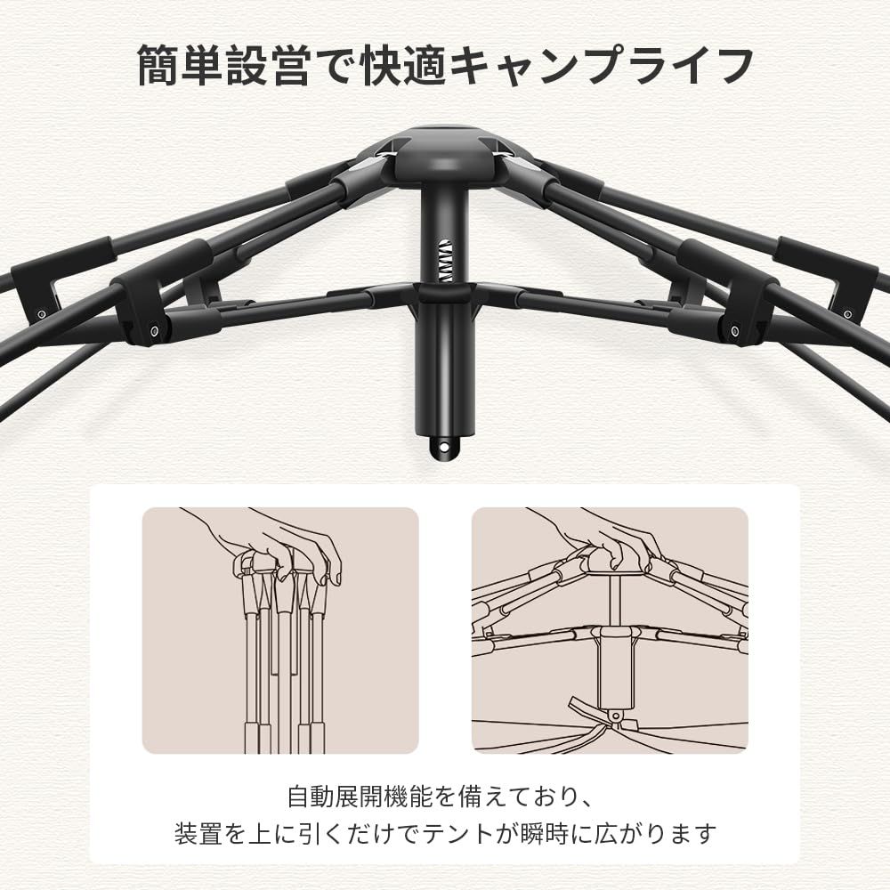 大型 5-6人用 ポップアップテント 快速設営 ワンタッチ 二重層 テント UPF 50 日焼け対策 CROWN PU 3000 mm 防水防雨 CAMEL 収納ケース付き