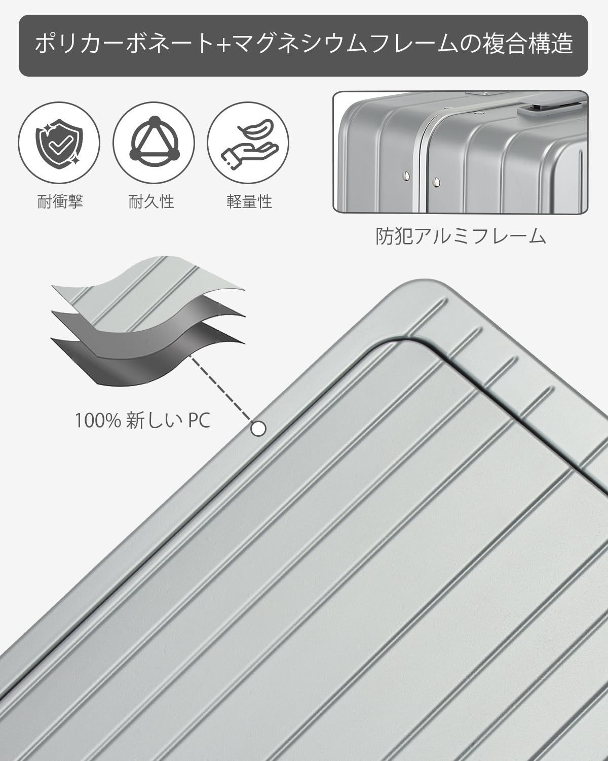 [Sea choice] スーツケース フロントオープン キャリーケース Sサイズ 機内持ち込み アルミフレーム 軽量 大容量 多機能 カップホルダー付き 隠しフック機能 前開き キャリーバッグ PC素材 耐衝撃 静音 ストッパー付き360度回転 キャスター TSAロック 旅行 ビジネス 出張 修学 入院 (シルバー、Sサイズ、40L)
