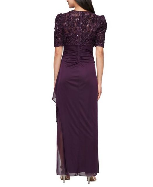 アレックスイブニングス レディース ワンピース トップス Women s Embellished Puff-Sleeve A-Line Dress DEEP PLUM