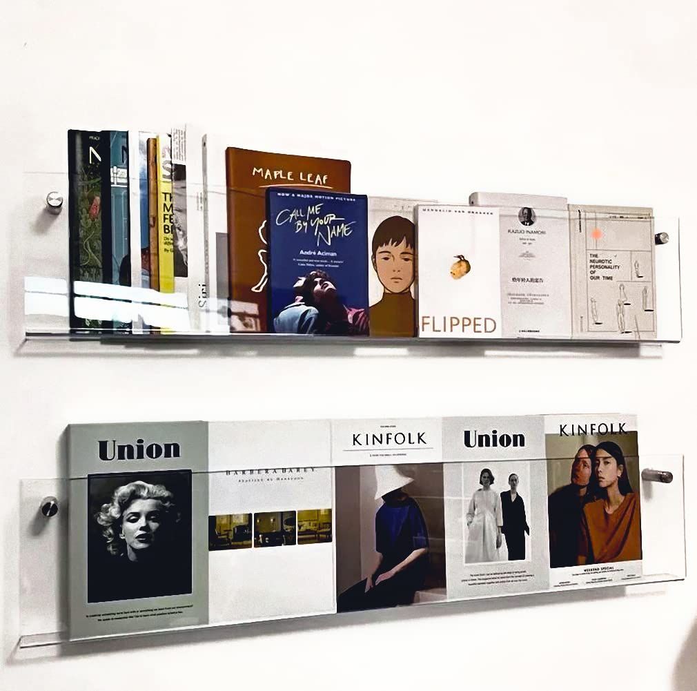 パンフレットスタンド 壁面収納 60 15 5 cm ラック 本棚 壁掛け棚 80 雑誌ラック アクリル製 北欧 100 INS風 マガジンスタンド 壁掛け 透明 20 3.5 マガジンラック