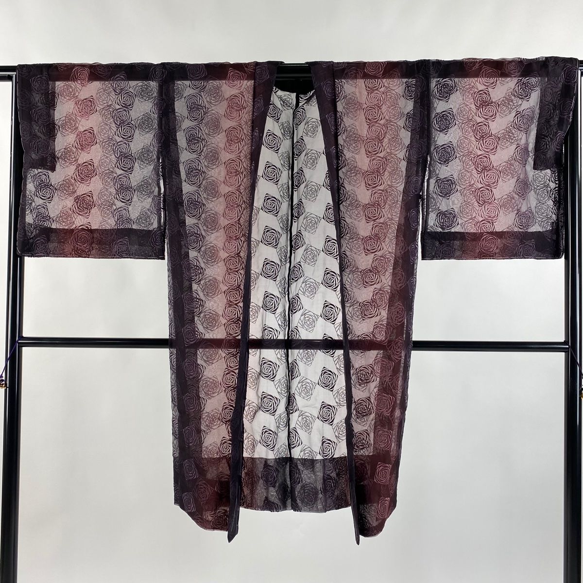 羽織 身丈106 cm 裄丈70 L 薔薇 刺繍 えんじ色 正絹
