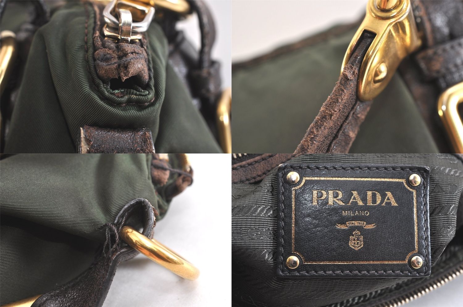 PRADA プラダ ヴィンテージ ナイロン レザー 2 Way ショルダーハンドバッグ カーキ グリーン 2782 N