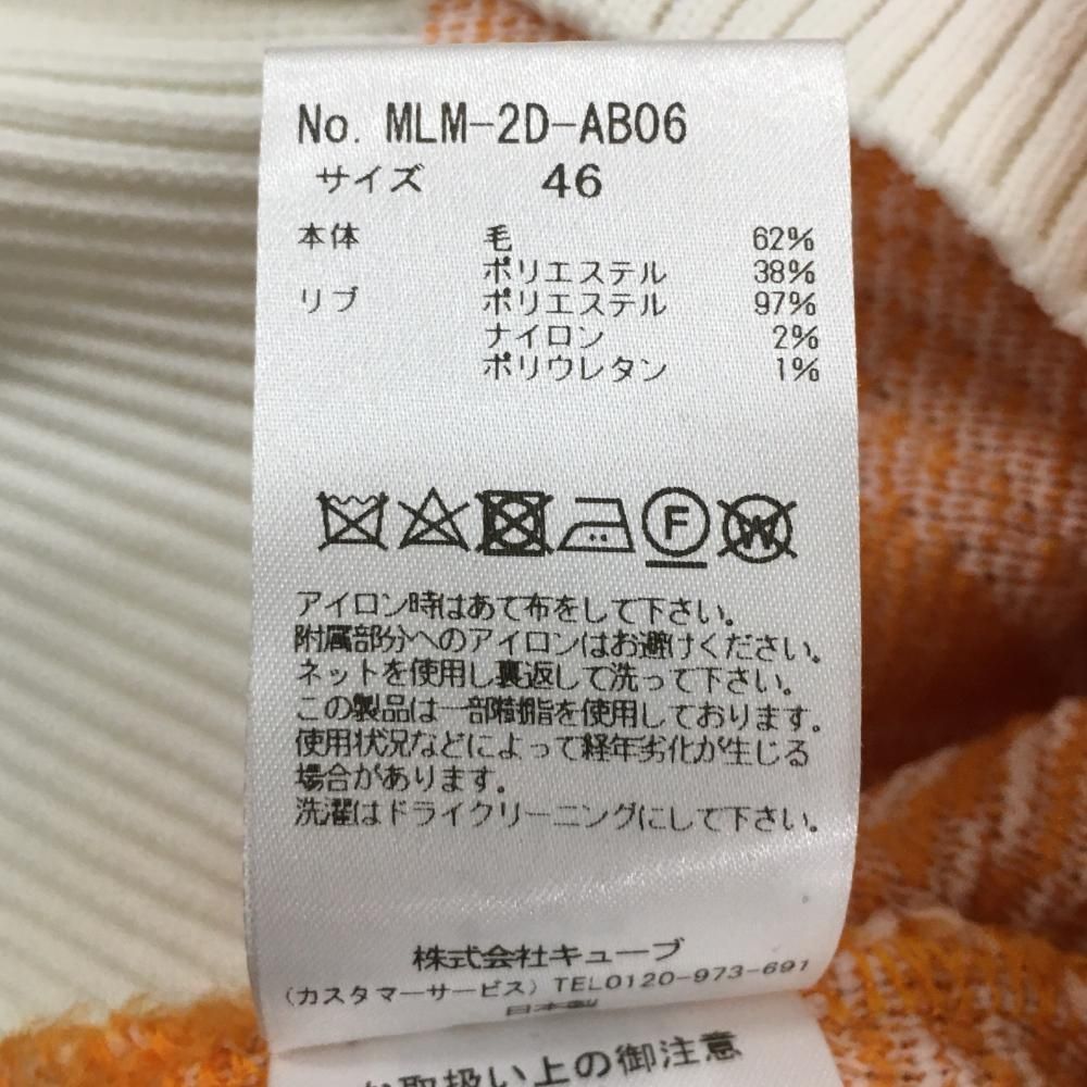 マークアンドロナ セーター オレンジ×白 スカル総柄編み ニット ウール混 リブ伸び少 メンズ 46 ゴルフウェア MARK&LONA