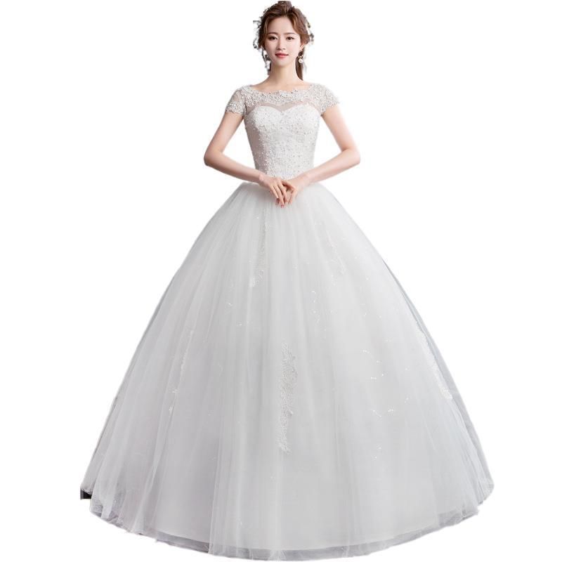 ウェディングドレス一字肩膝丈新婦結婚式韓国風立体フラワーデザインスリムプリンセスウェディングドレス-10.17
