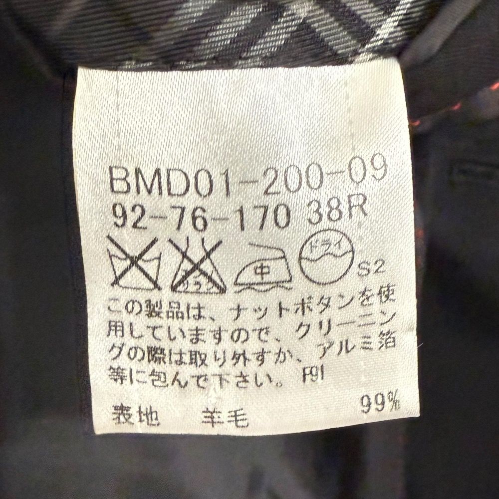 BLACK LABEL バーバリーブラックレーベル ジャケット スラックスパンツ セットアップ スーツ 38 ブラック メンズ 古着