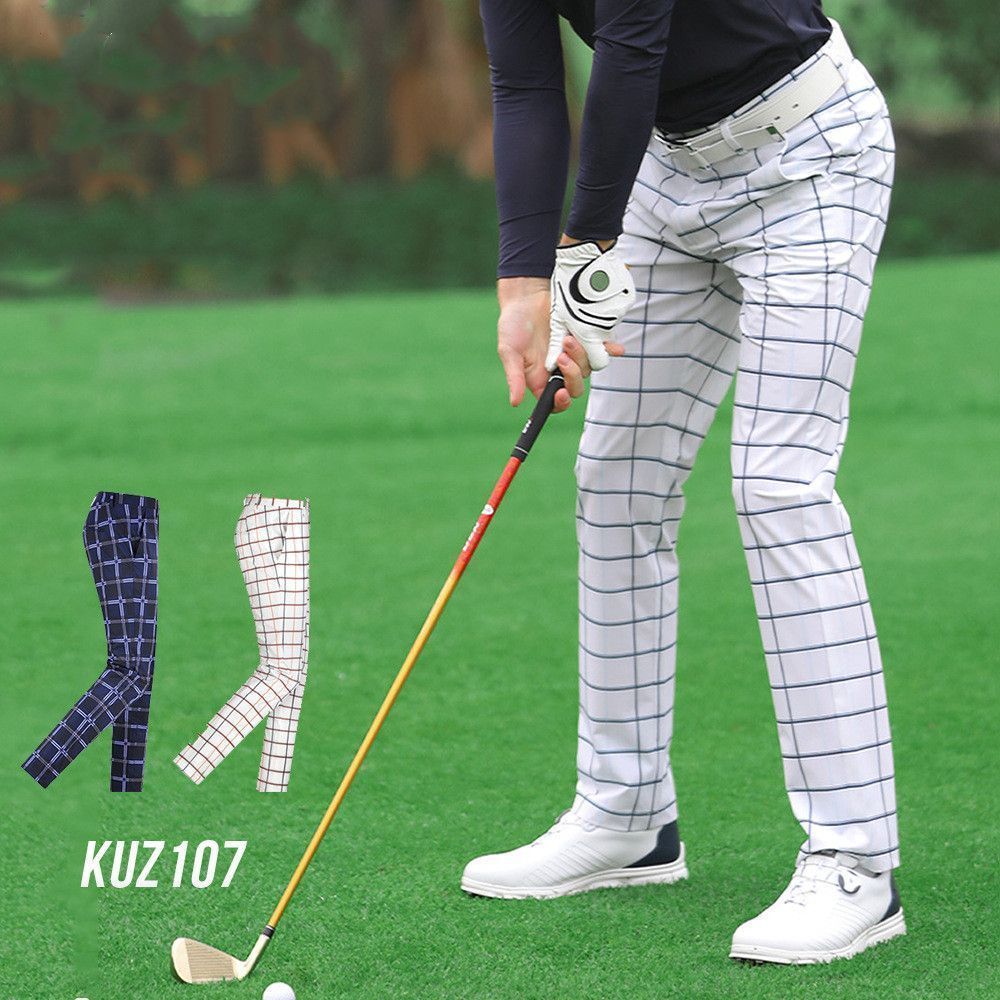 ゴルフウェアメンズパンツ大きいサイズチェック柄ストレッチゴルフパンツM~XXLおしゃれ