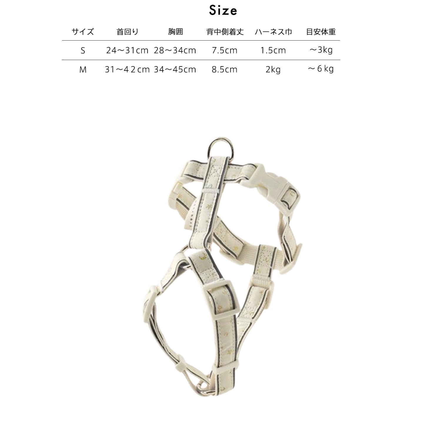moncheri モンシェリ 犬 ハーネス 反射ほし柄ハーネス IVORY M かわいい おしゃれ ブランド トイプードル チワワ 小型犬