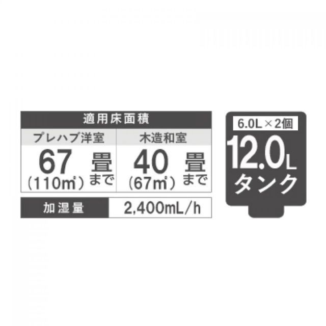 加湿量:2400mL/h