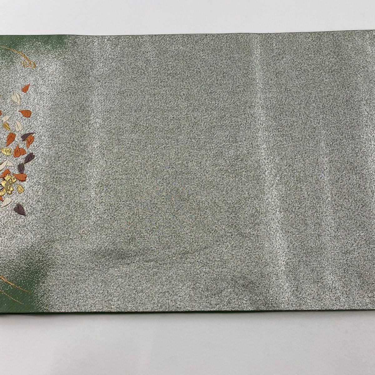 袋帯 加納幸 落款 桜 桜の花びら 金糸 箔 薄緑 六通 正絹