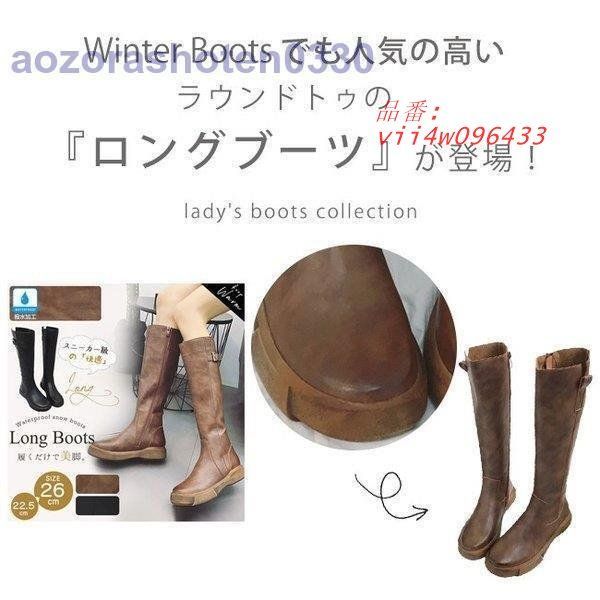 ロングブーツ レディース ぺたんこ サイドジップ 大きいサイズ フェイクレザー 歩きやすい ジョッキーブーツ 秋冬 防寒防滑 美脚 裏起毛 防水 vii 4 w 096433