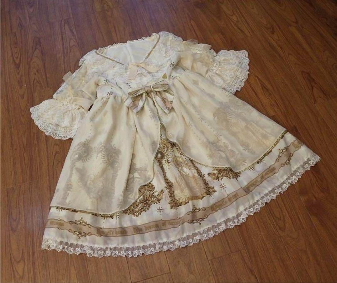 華やかなロリータファッションで冒険へ!パニエとカチューシャが魅力を引き立てる3点セット。お出かけや女子会にぴったりなこのワンピースで、日常も特別なシーンに大変身!