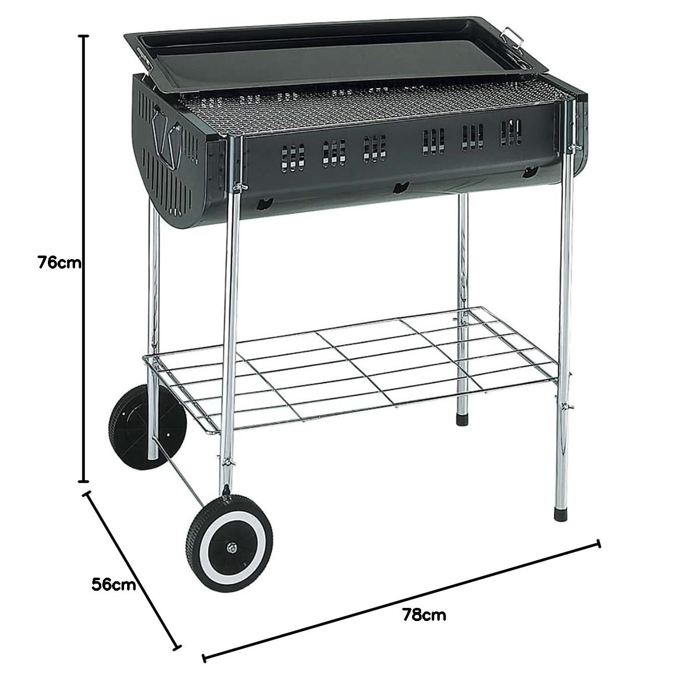 材質:本体:鉄(メラミン樹脂塗装)/鉄板焼器:鉄(ラッカー塗装)/バーベキューアミ、棚網、脚、ハンドル:鉄(クロムメッキ)/目皿:亜鉛めっき鋼板/車輪:ポリプロピレン