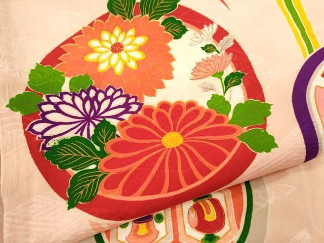 平和屋着物 アンティーク 大正ロマン 七五三 女の子 7歳 祝着 四つ身 吉祥草花文 ze
