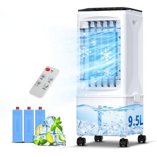 Clyrox冷風機冷風扇 夏新登場 強力冷風 9.5 Lタンク静音設計1 7時間タイマー機能3段階風量調節冷風モード搭載上部給水と下部給水タッチパネル-リモコン操作自動首振り加湿機能空