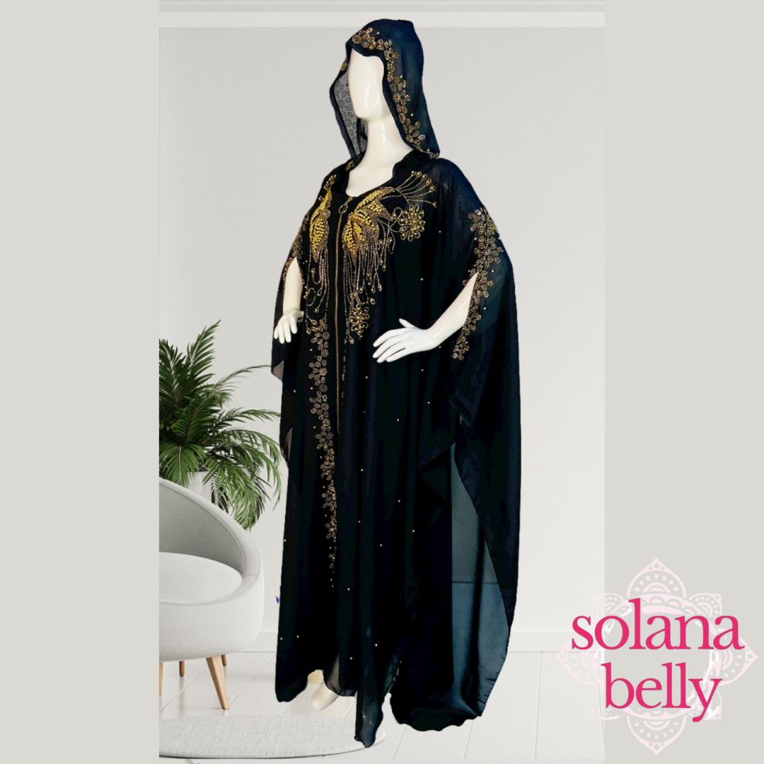 ベリーダンス 前開き ガラベーヤ アバヤ ブラック ゴールド