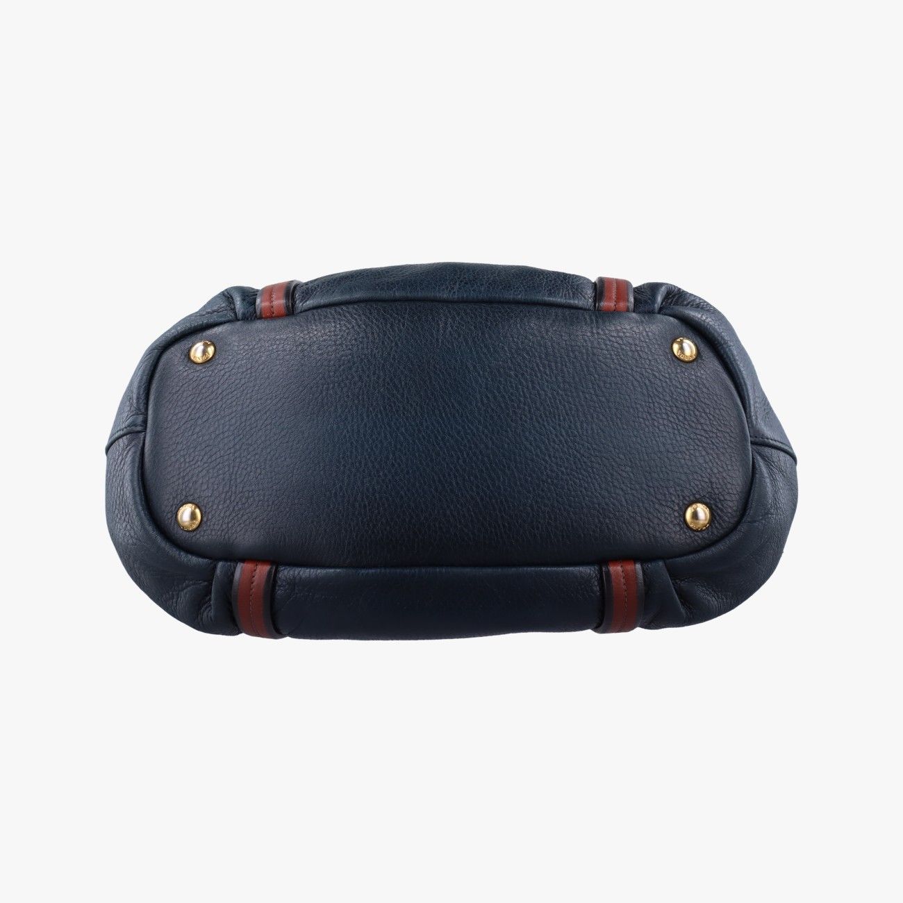 プラダPradaスクエアバックルネイビー×ブラウンレザー