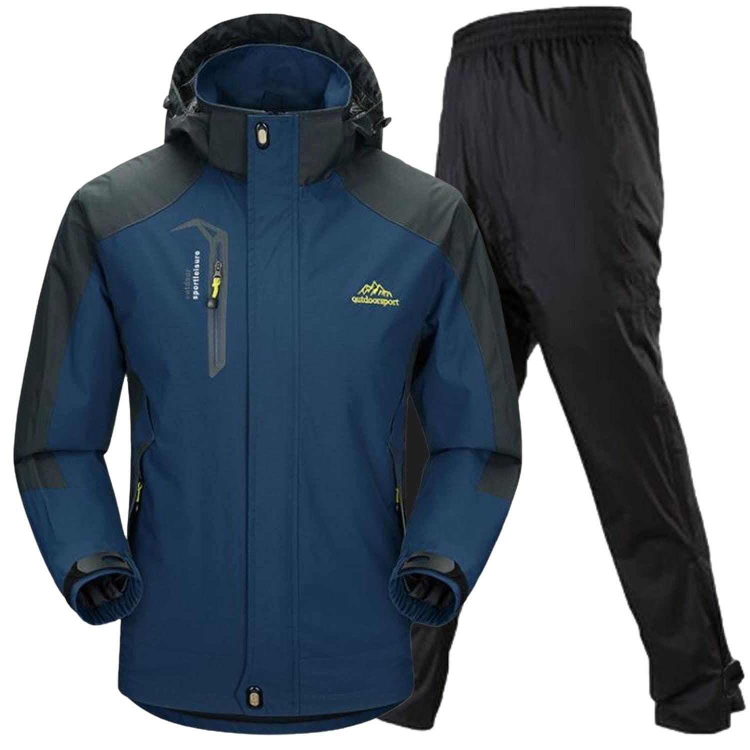 Size:2XL_Color:1.ネイビー (防水レインパンツ) [ベンケ] 【雨風に強い】 アウトドア ジャケット レインスーツ 上下 セット 登山服 雨具 カッパ レインコート レインウェア 防寒 防風 防水 登山 ウェア 長袖 バイク 釣り フィッシング キャンプ 自転車 トレッキング ツーリング ライダース (ネイビー 2XL)