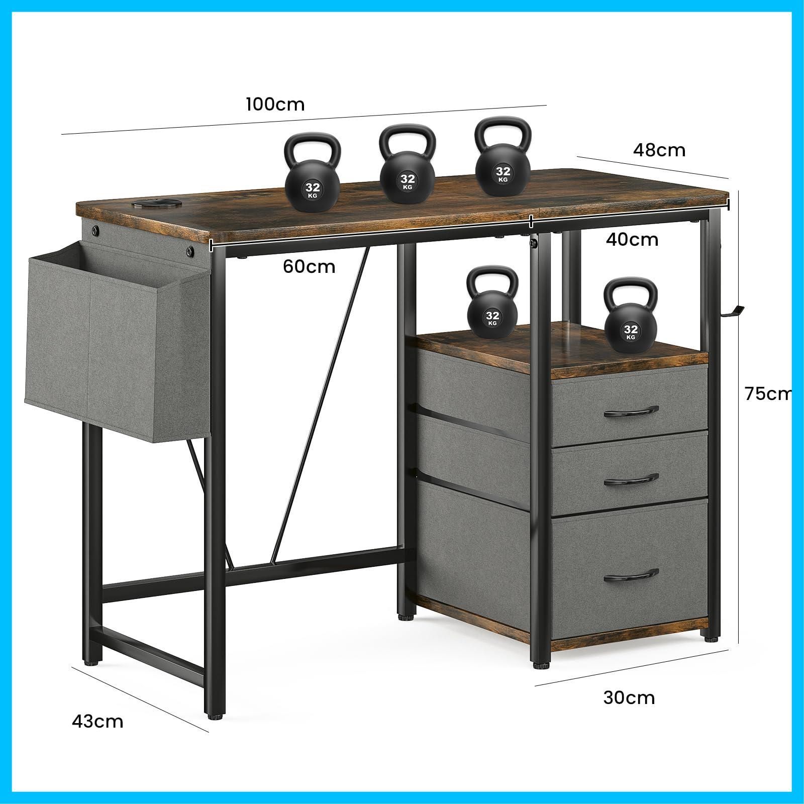 Sunon デスク パソコンデスク ラック付きpcデスク 幅100cm×奥行48cm 机 引き出し付き 勉強机 ドリンクホルダー デスク 在宅ワーク 作業机 テレワーク ブラウン